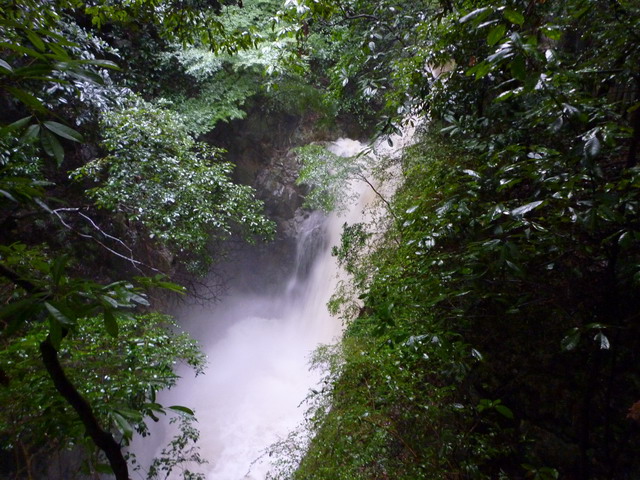快到最後一個;雄瀑布時,雨下超大,雄瀑布的水氣大到我