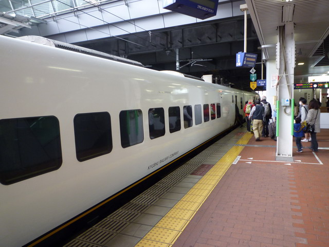 我們去長崎是坐到白色KAMOME,超顛簸。從長崎回博多就坐到白色SONIC,很舒服。我覺得很奇怪,同樣都是885系,怎麼黃的就晃的超厲害,藍的就不會。