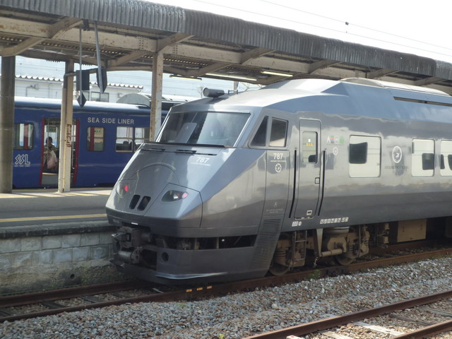 博多到大分走日豐本線的車子都叫SONIC,一種是藍色甲蟲的883系,一種也是885系,又叫白色SONIC。