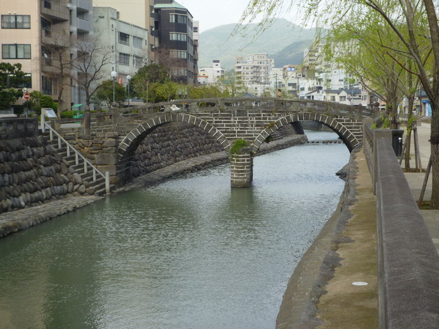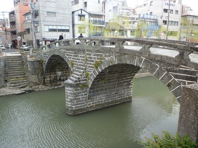 中島川上的石造古橋很多,其中又以眼鏡橋最老。