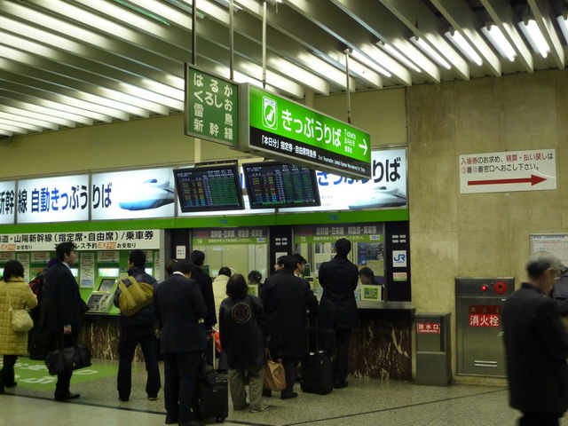有了山陽四日卷就不用投幣買票了,直接到人工售票的窗口,出示山陽四日卷,比手畫腳一番,就可以買到有座位的票。