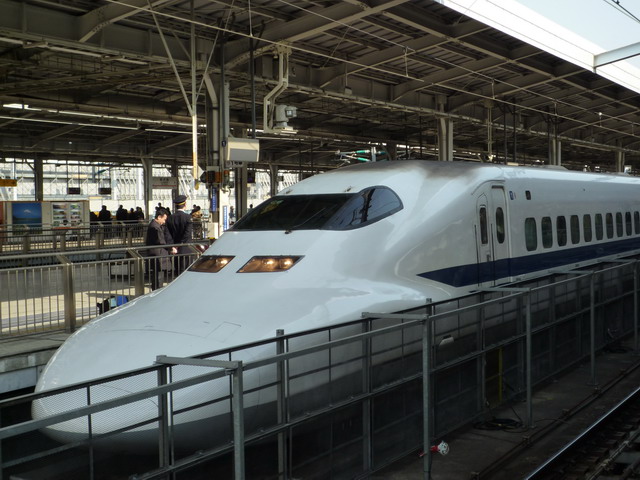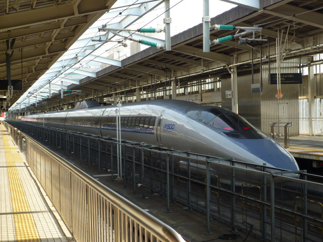 新大阪車站的500系車型,看起來很前衛,是目前所有新幹線時速最快的。