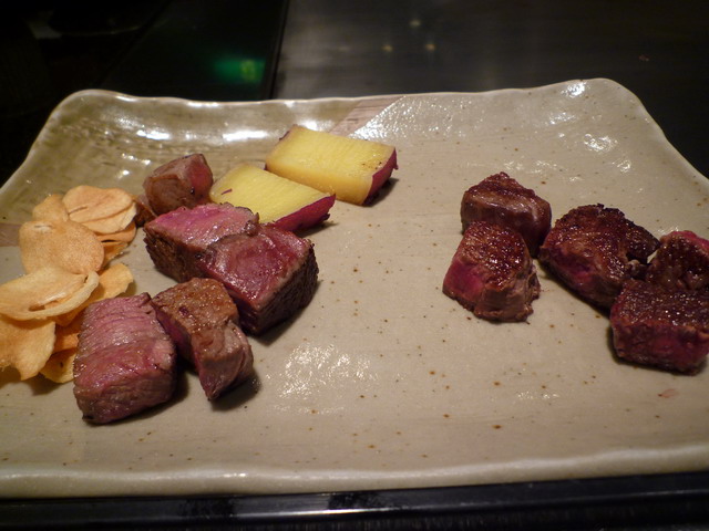 我們點了一份國產牛和黑毛和牛。左邊是國產牛,3500日圓。右邊是黑毛和牛,5000日圓。