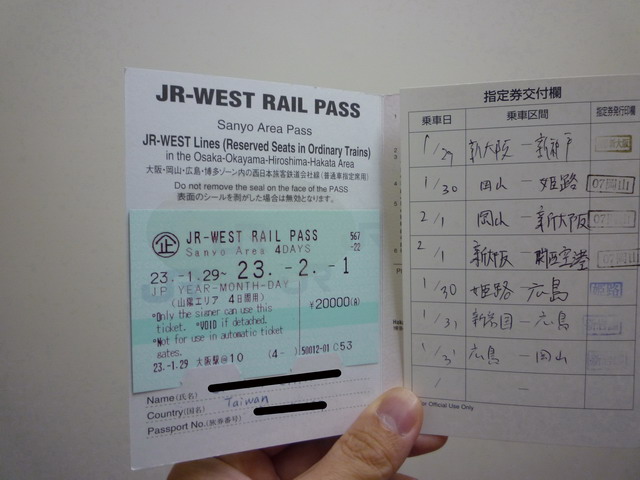 我們在台灣先買好山陽四日卷,在大阪車站換成實際上使用的票證。
