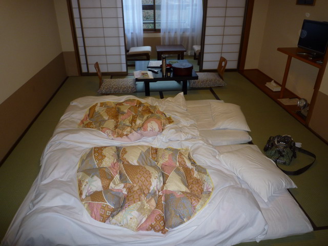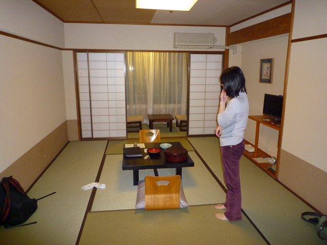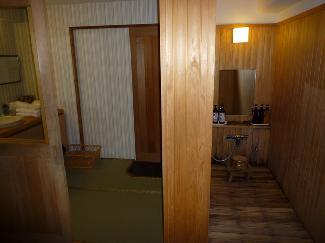 回到旅館。日本的旅館大部分都是大浴場,大家一起洗。這家旅館有貸切風呂(個人池),要額外付錢。想說沒看過貸切風呂,泡泡看。