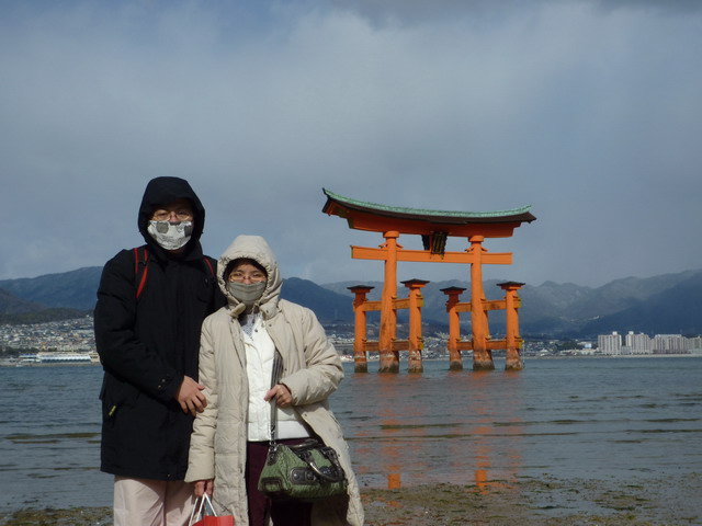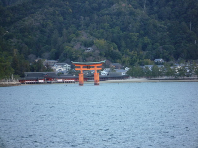 今天潮位是中午和午夜退潮,清晨和傍晚滿潮,所以我們看不到滿潮時在水上的嚴島神社了。