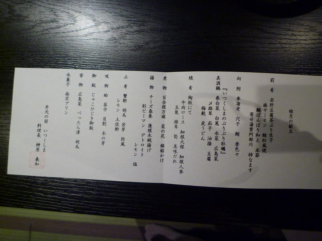桌上有今天晚上的菜單,另外一張比較大張的菜單上有英文,還有料理長的蓋章。