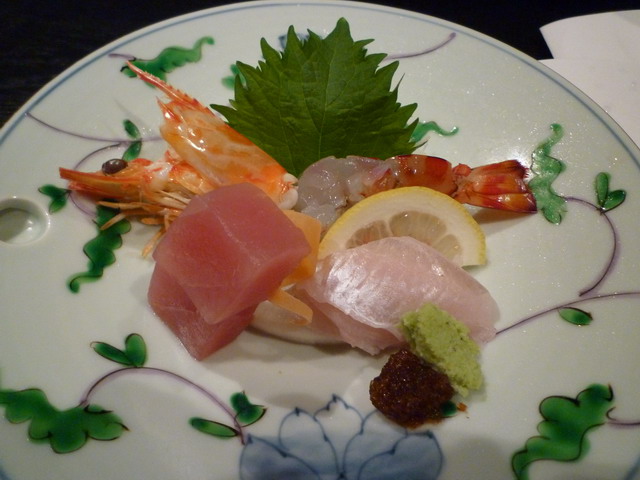 生魚片:蝦子 鮪魚 穴子魚。