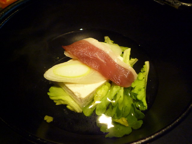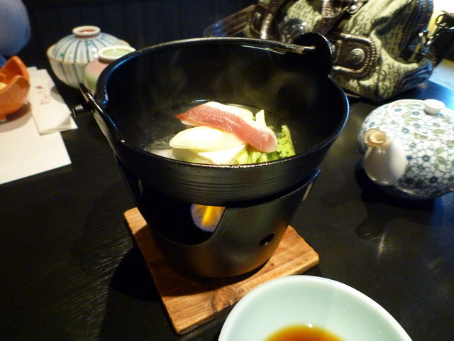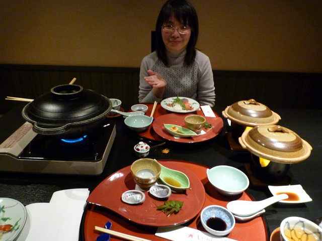 火鍋。我問服務人員:『ka ki sa shi mi,i de su ga?』,服務人員雙手比X,作出拉肚子的表情。她解釋說宮島的牡蠣也是有分等級的,這種是不能生吃的。