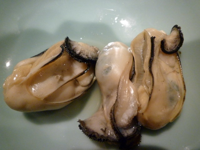 川燙完的牡蠣,很飽滿,不像台灣的牡蠣都會縮水。