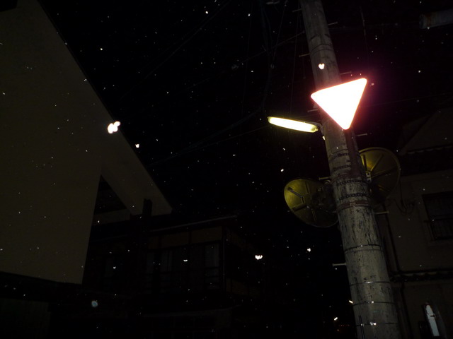 出去走走,消化一下,再回來泡湯。街道上下著小雪。
