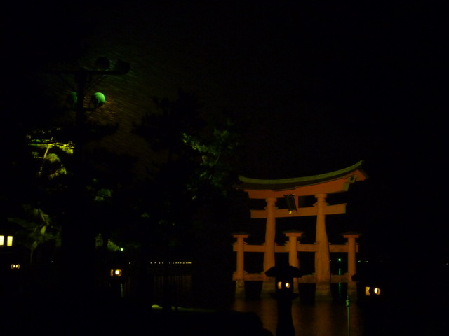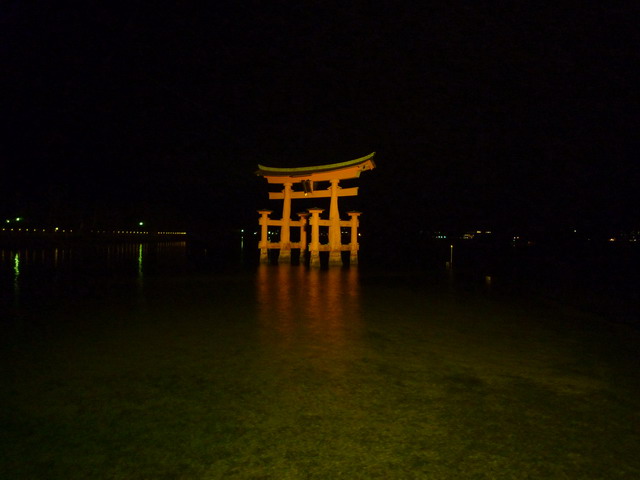 夜晚的海上鳥居。