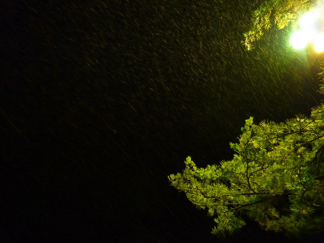燈光下的雪。