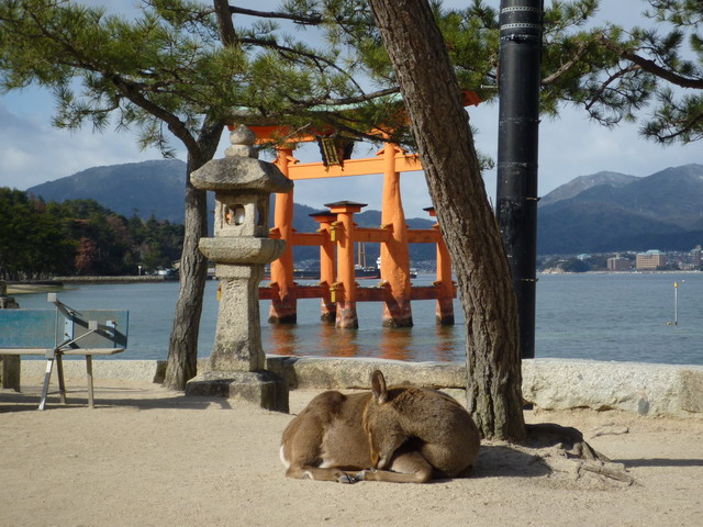 吃完飯我們就坐渡輪離開宮島了,海上鳥居 Bye Bye,梅花鹿 Bye Bye。