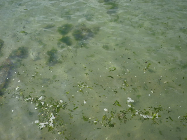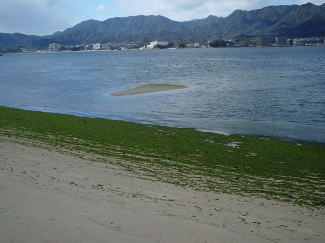 海水越退越多,本來在海裡的海苔都佈滿在退潮的沙灘上。