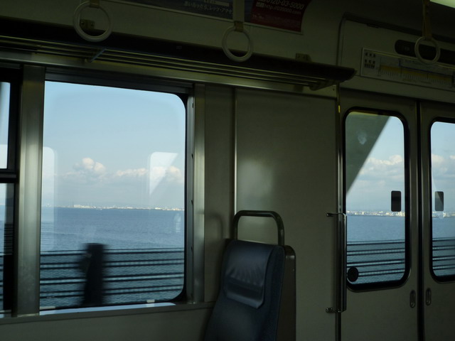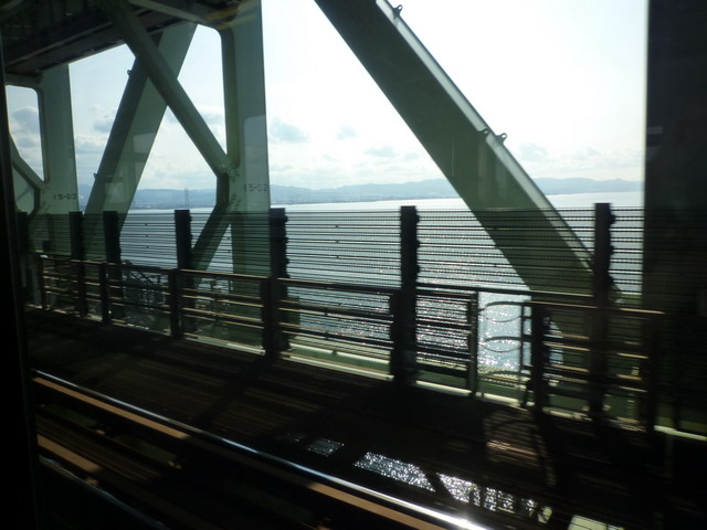 行駛在關西機場連接陸地的跨海大橋上。