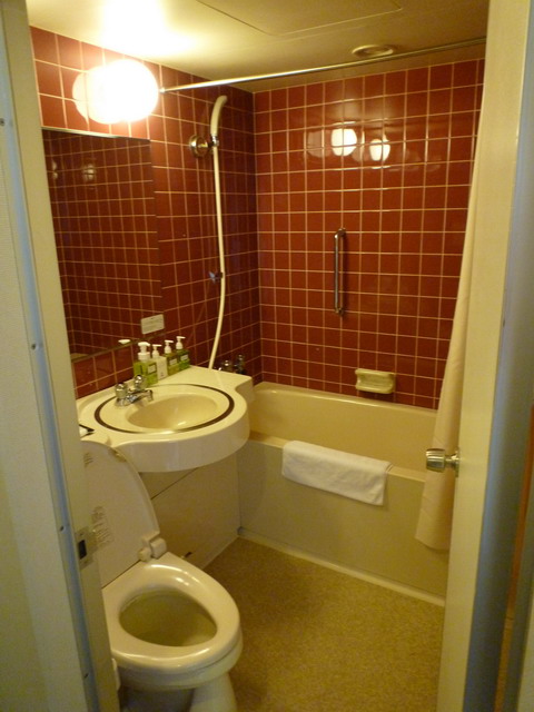 格蘭比亞的衛浴。日本的飯店衛浴大部分都是像這樣套裝式的。