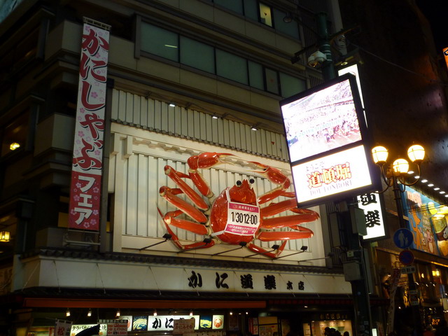 離開仁德天皇陵,我們前往道頓崛吃晚餐。一樣是從百舌鳥坐普通車回三國之丘,再坐快速到天王寺站,從天王寺站轉坐地下鐵御堂筋線到道頓崛。這是道頓崛的蟹道樂本店。