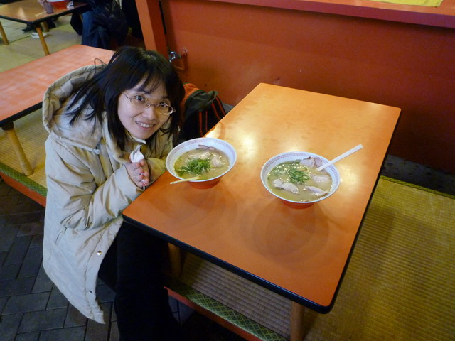有四間分店的金龍拉麵,龍最大那間是本店。它只賣兩種拉麵, 買食卷再交給櫃檯。煮麵的夥計是講中文的。