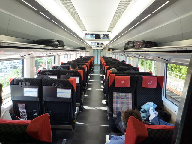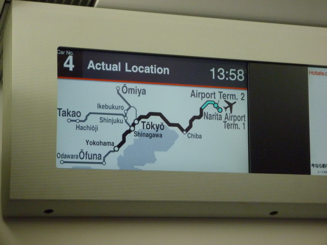 車廂走道上方的液晶螢幕會顯示現在行駛到哪裡。