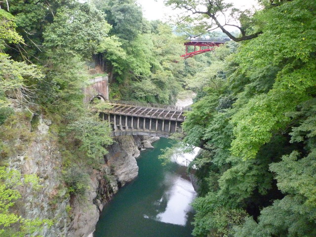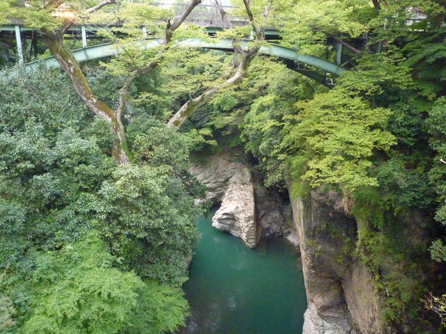 猿橋下游,下面是附近發電廠的水路橋,上面是國道20號的新猿橋。