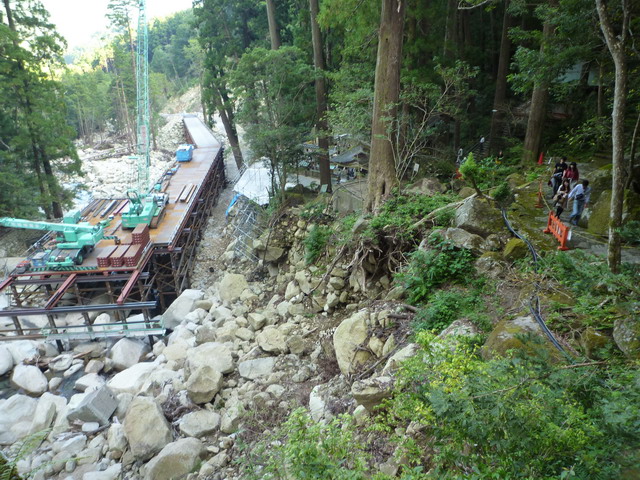 去年颱風造成步道邊坡受損,修復工事進行中。