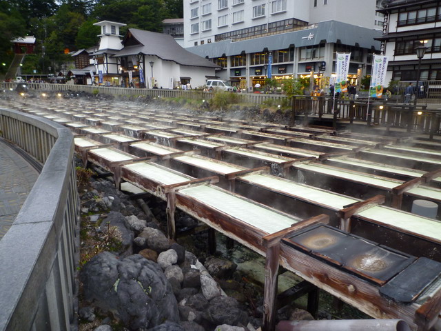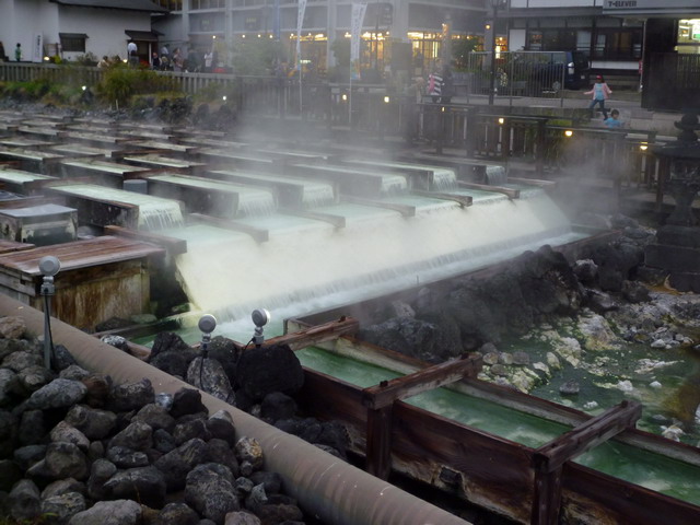 草津溫泉共有七座源泉,合計湧泉量每分鐘32000公升,其中最具代表性的就是湯畑。