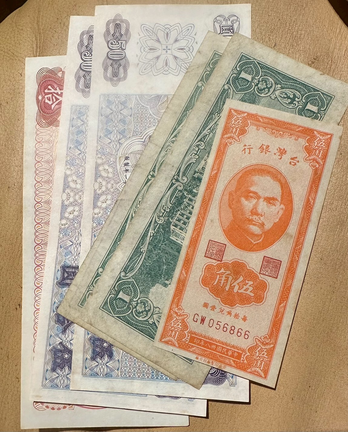 他喜好收藏,長榮航空退下來,各式kitty貓的撲克牌十幾幅要給我收藏,盤子杯子也贈我ㄧ對,最特別的是他收藏錢幣的功夫,民國幾年到幾年的幣值、紙鈔,那是我小學階段拿著五毛錢買糖果的年代,看到那些錢幣,兒時的午餐費全買零嘴的回憶,一下子全湧了上來,很奇妙的感覺。想說這絕跡的錢幣讓我把玩欣賞一下即可,沒想到這個也要給我一套,這…怎麼行,但我真推辭不了,該給繼子的都備份好了,也要給我一份當傳!家!之!寶!