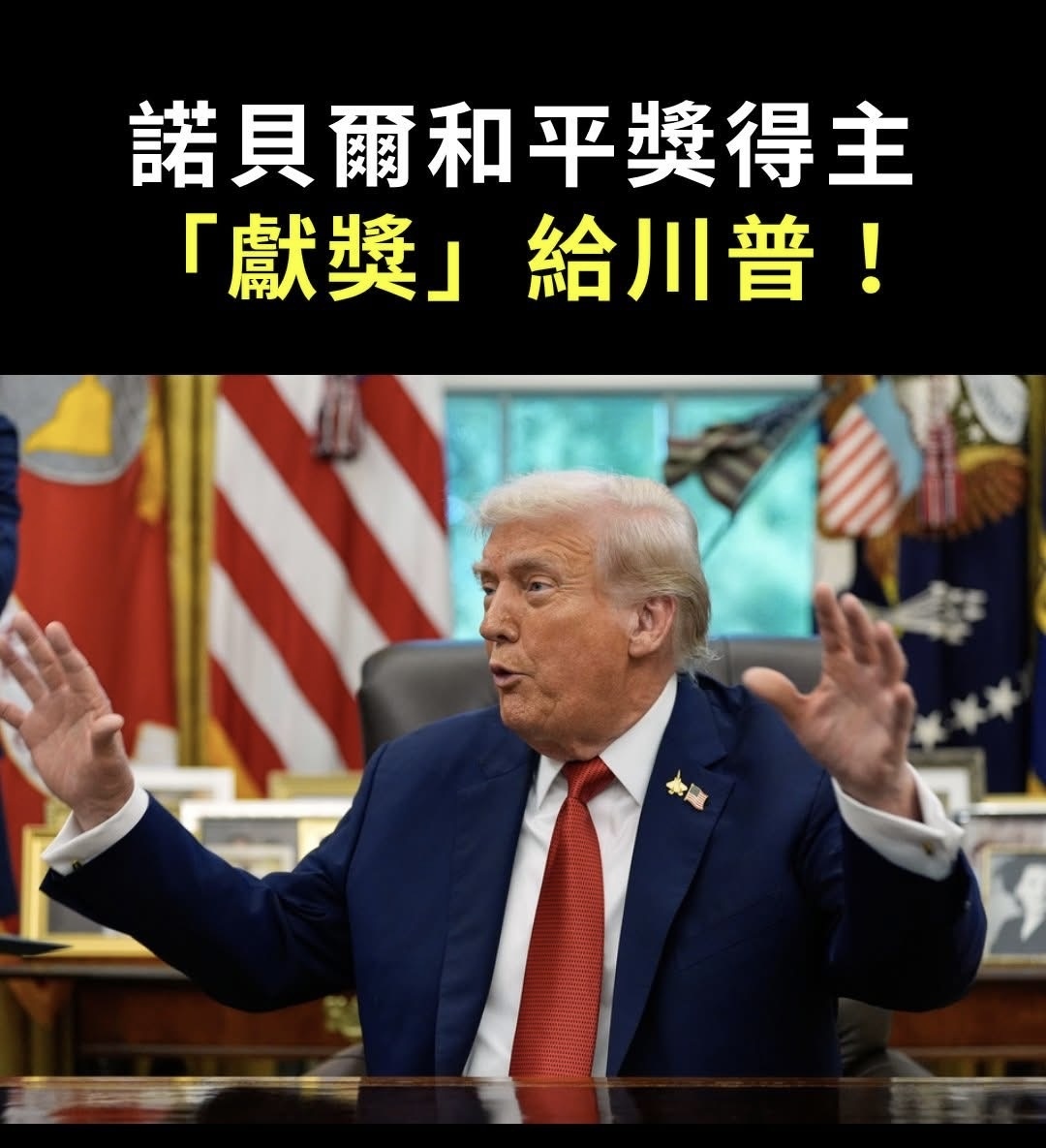 說道一點沒錯,為什麼大家話題都圍繞著川普,以罵倒川普為樂,不是應該去關注那個得諾貝爾和平獎的那個人嗎?那個人凌駕川普九個月內調停8場戰爭的聲勢,那些戰爭有的打了1000年,死了千萬人,有的才正要開打,都被川普搞定了!那些自以為打打嘴砲的菁英們,不是正應該表現自己的內涵,去多談談這位瑪麗亞.科里納.馬查多嗎?