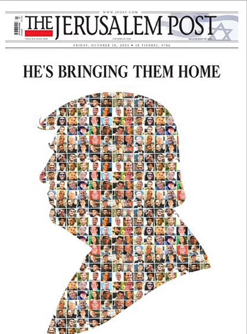 耶薩冷郵報用整版報紙刊登人質照片拼成的川普頭像