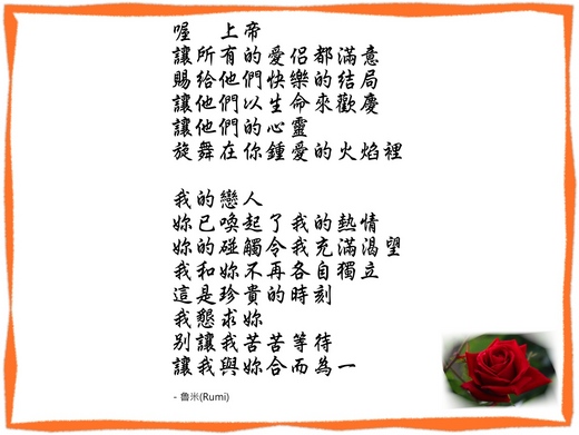 魯米的詩句,常用「妳」來隱喻內在的喜樂