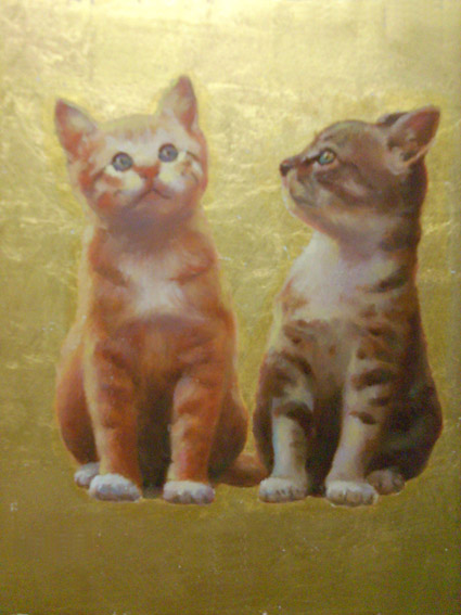 2005年 我初次以油畫畫了兩隻小貓咪 四周並貼滿了金箔~