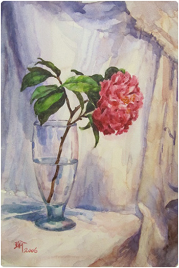 這光景 也令我想起了多年前畫的一朵茶花.....