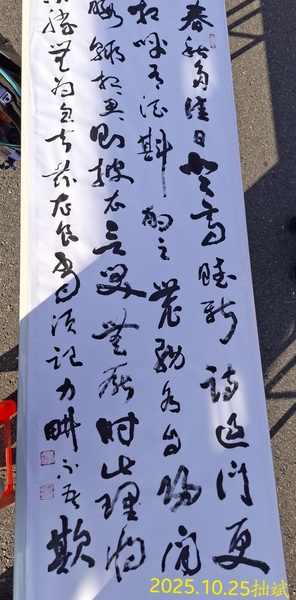 活動盛大,友人與我早早報到,找到位置後,發現左邊的老師已經快完成作品了,遂也趕緊準備就緒,生怕活動一開始太過吵鬧寫不了字,完成作品後開始觀摩他人作品,有遊戲之作有認真之作,單位團體有整體布局之作有個人揮灑之作,總之各有特色。