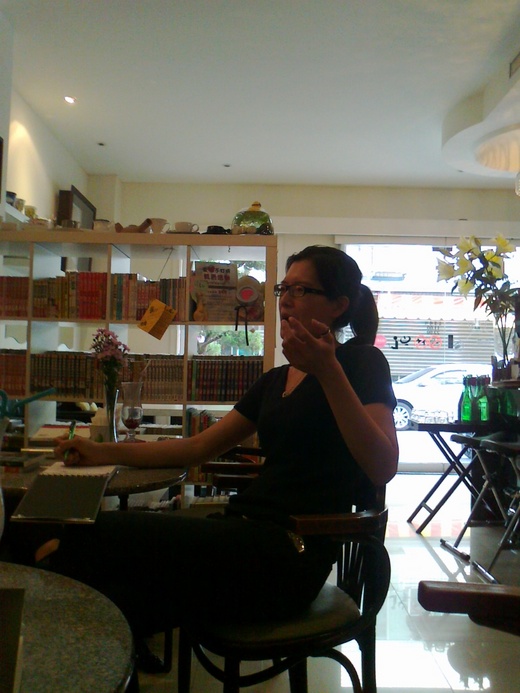 今日她剛好在試新的豆子,叫我們幾個排排坐,也喝。
