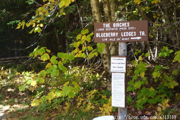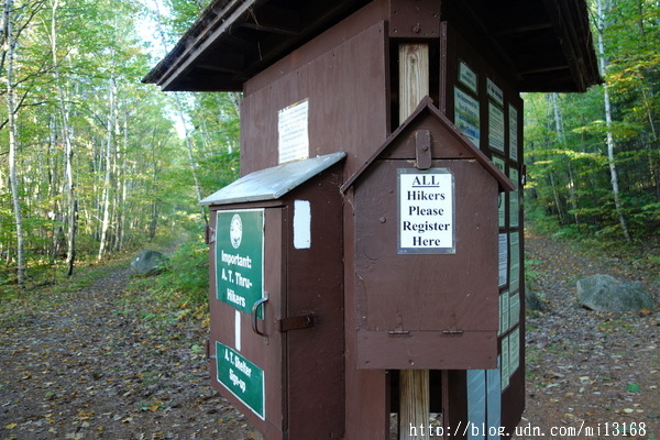 昨晚風平浪靜,星辰閃爍,但是清晨卻刮起了風,我很擔心天氣是否有變。早上6:20起來,既然有那麼點偷露營的疑點,整裝後就儘快離開了。出發不久就看到滿地紅葉,真是漂亮。過了木橋後(2170.7),正式進入公園範圍,出現一座無人崗亭貼滿著佈告。所有的山友都要在此寫下山友名,當天日期,出發日期等,旁邊的另一盒子是專門給AT全程山友自助登記今晚住宿The Birches木屋,我已完成手續就免了再登記。公園的山徑真好走,又寬又平,群山翠綠競艷,萬紫千紅,真是賞心悅目。山徑沿著河邊走也慢慢縮窄,偶而有一些爬坡現象。河水迎面而來,水波粼粼,陽光曬落閃閃發亮,不斷注滿眼眶,我突然想如果AT全程都是如此舒服又美麗的路況,那不知是什麼感受 ?