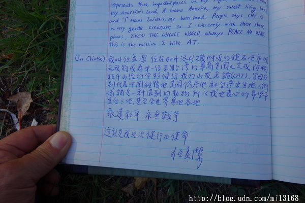 告別AT只剩今晚了,坦白說今天的景色再也吸引不了我太多的目光,倒也應了“黃山歸來不看岳,九寨歸來不看水”這句話,但又有股極難說清楚的情懷迴蕩在心中,既想趕快走完全程達成心願,開始回歸看似輕鬆正常的生活---穿上沒有味道的衣物、不再污泥濕漉的鞋襪、窩在溫暖厚軟的被褥中…這些在AT是不存在的,又想此次離開後,不知何年何月才再相逢 ? 山友間流傳著一句話“AT會呼喚你回來的” (AT will call you back),我想也是。接近6個月的人事物相聚,每天從早晨起,不對,每分每秒你都在面對不同的變化,半夜突然的雨聲、遠方湖面阿比鳥(loon)的驚鳴、樹叢中白尾鹿的身影、金花鼠(chipmunk)在你腳邊的跳躍…這些大自然的傑作,公平無私的一幕幕、不停歇、不吝惜的為你上演,所以一開始我就錯了,我不是來挑戰AT的,AT接受我的挑戰,但我只是投入AT的懷抱,傾聽AT的細訴。我想,總有一天,我還會回來的。