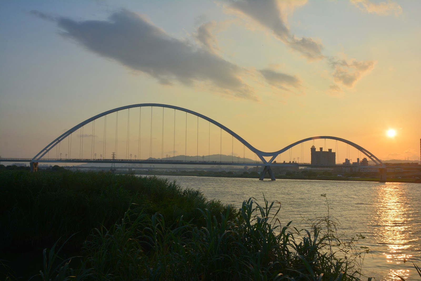 在江子翠景觀河濱公園往回欣賞新月橋的夕陽也有不同的美感 |