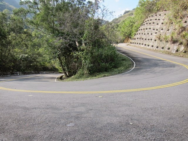 回程,都是下坡,要注意的就是“安全“,不要因為貪快而發生意外,尤其是手腳凍得僵直的時候,更應特別提醒自己,控制自己行動的能力會稍微遲頓。所以,安全第一!下坡,風本來就強,加上北風逆襲,更冷、更不舒服。尤其北風不停在耳邊嘶喊著,好像要撕裂我的臉一樣的吼著!讓我感到畏懼,想要趕快結束旅程,又因為速度越快,感覺越冷,所以是一種停也不是,進也不是的窘境!所幸,在重力加速度的自然狀態下,車還是自動的向下滑行,不容我多想。就這樣,在半推半就的情況下,很快的就下到山腳下了。