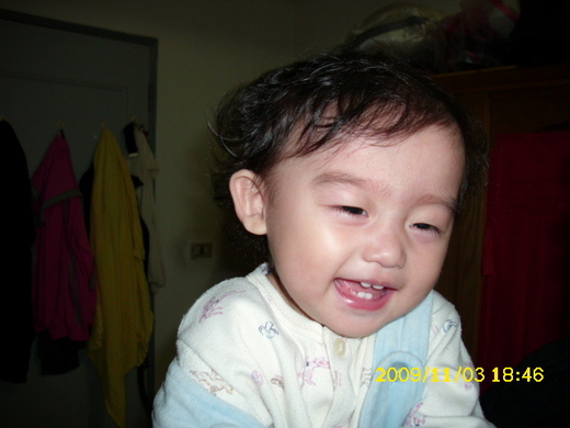 哶哶生日快樂.今天滿週歲了.但哶哶很可憐.去打預防針.遇到菜鳥護士.本來打2針就好.但菜鳥護士太緊張.幫哶哶打第1針時不知是太緊張還是怎樣.竟然針插上哶哶柔嫩的手臂時沒將藥劑打進去.還把針拔出來.頓時哶哶手臂流血了.另一位護士趕緊拿棉花幫哶哶止血.然後拿起針筒在幫哶哶打預防針.快速的再另一支手臂打流感疫苗.而那菜鳥護士好像還沒回神.哶哶已經哭到不行.真心疼.