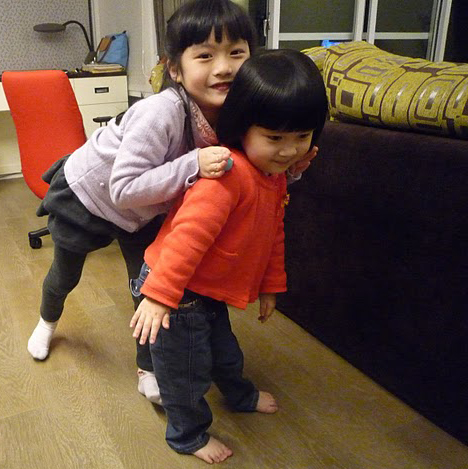 舉例來說,像兩個小孩吵架的時候,身為公正不阿,鐵面無私的父親大人,當然想盡辦法得做到盡善盡美,公正無私,順便還來段有教育意義的精神訓話+心靈溝通,只不過時候難免有不在場,或是無法找出證據佐證的裁決案例,這時看著兩個小孩子抓狂似的互相指責對方,實在是又好氣又好笑,每每仲裁完兩姊妹的爭執後,首先會要求錯的一方跟對的一方道歉,然後對的那一方要很有風度的說:「沒關係」;如果無法判定的狀況,就雙方互相道歉,最後我會要求兩個面對面,相擁說:「姊姊我喜歡妳」和「沛妮我喜歡妳」。我也不知這樣好不好,也不知這樣的要求,會不會一到叛逆期就像格達費一樣被推翻?不過我只是想讓她們知道,親人永遠是最親的。