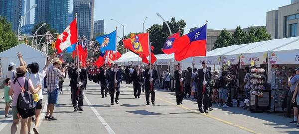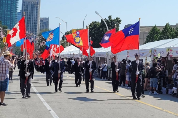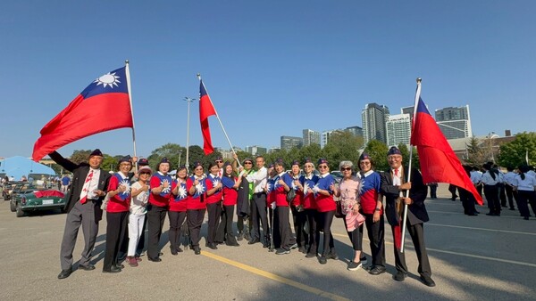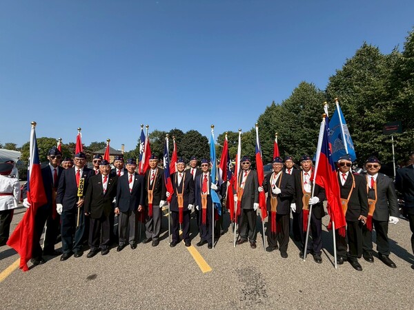 當日,駐多倫多台北經濟文化辦事處處長梁毅鵬親臨檢閱,榮光聯誼會理事長潘桂興與歷屆理事長也親自率隊出席,展現凝聚力與傳承精神。雖然今夏酷熱異常,但榮光會成員經過數週集訓,仍以整齊劃一的隊形和昂揚的氣勢完成遊行,充分展現海外退伍軍人與軍眷堅毅不屈的風貌。