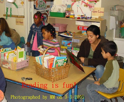 三,四百本的書涵蓋各個主題,不同作者,不同插畫家, 不同畫風, 讓我在教學上隨時有資料可以使用.我也喜歡在每一堂課程中,無論開始或結束, 為上課的小朋友們唸一本兒童繪本.也因此常在課程結束後 (學齡前兒童班) 有家長跟我借閱在上課時唸過的繪本. 較大一點小朋友也主動向我借書回家看看. 每次的借書都讓我很開心, 我說”你們在家裡有時間慢慢一起看書. 而且要好好的保護我的書.” 借書的好習慣,也希望能一起養成愛護書本的好習慣, 再慢慢養成買書看書的好習慣.