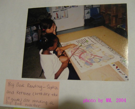 因此分組的引導性閱讀(Guided Reading)的教學活動最適合不同小朋友在閱讀上的需求。我將班上二十個人分成五組,每一組的需求及閱讀能力發展都不同,教學的樂趣在此,小朋友的學習樂趣也在此。有的小朋友對於文字概念較弱,閱讀的習慣也在啟蒙期,所以這一組的學習內容很基礎,在一個星期之中我至少將與這一組共同活動兩次:
