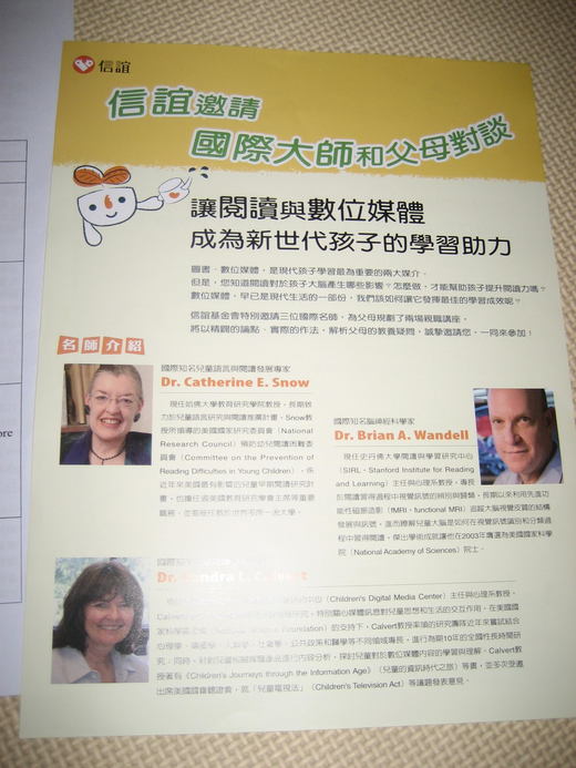 悠閒的週末下午前往台北板橋參加信誼基金會主辦的腦,閱讀與學習之全面