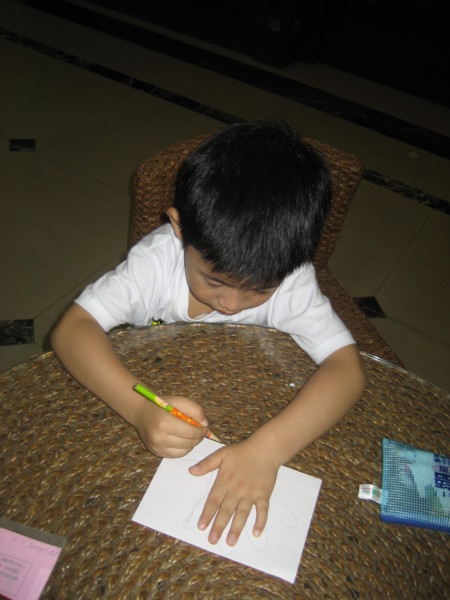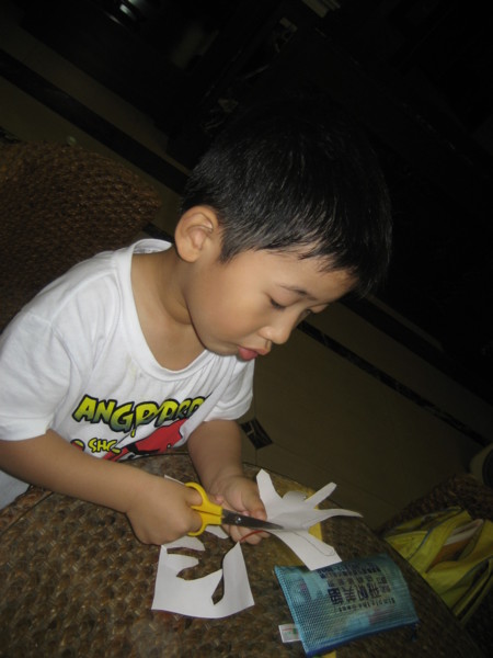 滿六歲的小 J 他很棒哦, 告訴他英文課上完後要做美勞, 他好開心, 他也一直
