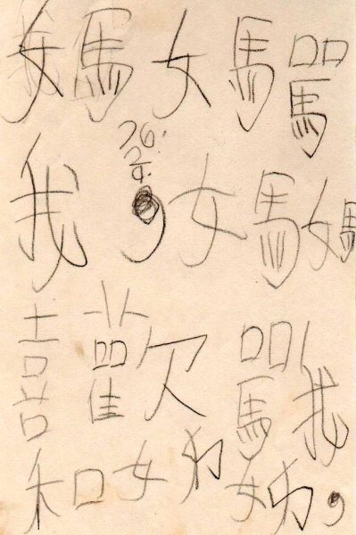 小恬三歲八個月時自動模仿學寫國字