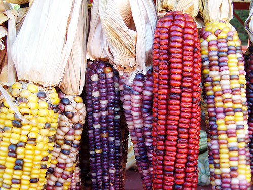 玉米的正名是玉蜀黍,又有許多別名,通常叫做包穀、珍珠米、番麥。我們常吃的甜質玉米,剝開外面包覆的層層葉片,便是長在中心軸周圍的一顆顆黃澄澄、明艷艷的飽滿珍珠粒,外形耀眼,味道甜美。白色的玉米好像亮晶晶的編貝皓齒,也可食用,甜度稍微比不上黃玉米,不過只要新鮮,自然一樣可口。此外印地安玉米有暗紅、深紫、鬱藍、咖啡等不同的色澤,甚至有的幾種顏色兼具,相當美觀,既可吃,又可作感恩節的裝飾。除去玉米粒餘下的穗軸,加工後,竟然可以變成別具風味的煙斗呢。