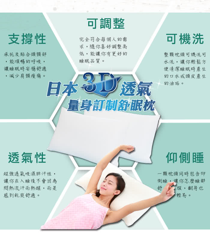 一起來看看這款【格藍傢飾】日本3D透氣可調式水洗枕(贈專用涼感枕套)吧!!!
