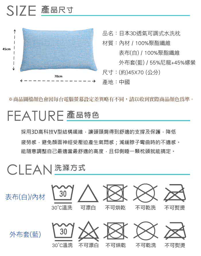 【格藍傢飾】日本3D透氣可調式水洗枕(贈專用涼感枕套)大家可以參考看看